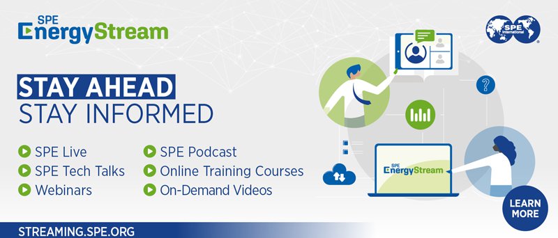 SPE Energy Stream is your go-to for watching thought leaders, subject-matter experts, and leading companies share their perspectives, innovations, market outlooks, and technical solutions. Discussions and webinars are available live and on demand. Learn more.